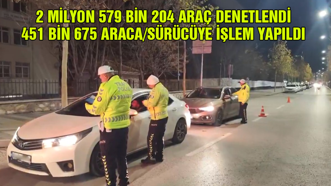 İçişleri Bakanı Ali Yerlikaya’nın paylaştığı bilgilere göre emniyet ve jandarma trafik ekiplerince 21-28 Kasım tarihleri arasında 2 milyon 579 bin 204 araç denetlendi. Işıklı ya da sesli uyarı işareti bulunan cihazları (çakar) mevzuatta izin verilmeyen araçlara takarak kullanan 245 sürücüye işlem yapıldı. Ayrıca periyodik muayenesi yaptırılmamış 26 bin 928, emniyet kemeri kullanmayan 23 bin 751, sürücü belgesiz araç kullanan 13 bin 618 ve zorunlu mali sorumluluk sigortası bulunmayan 10 bin 46 olmak üzere diğer işlemlerle birlikte toplam 451 bin 675 araca/sürücüye işlem yapıldı.