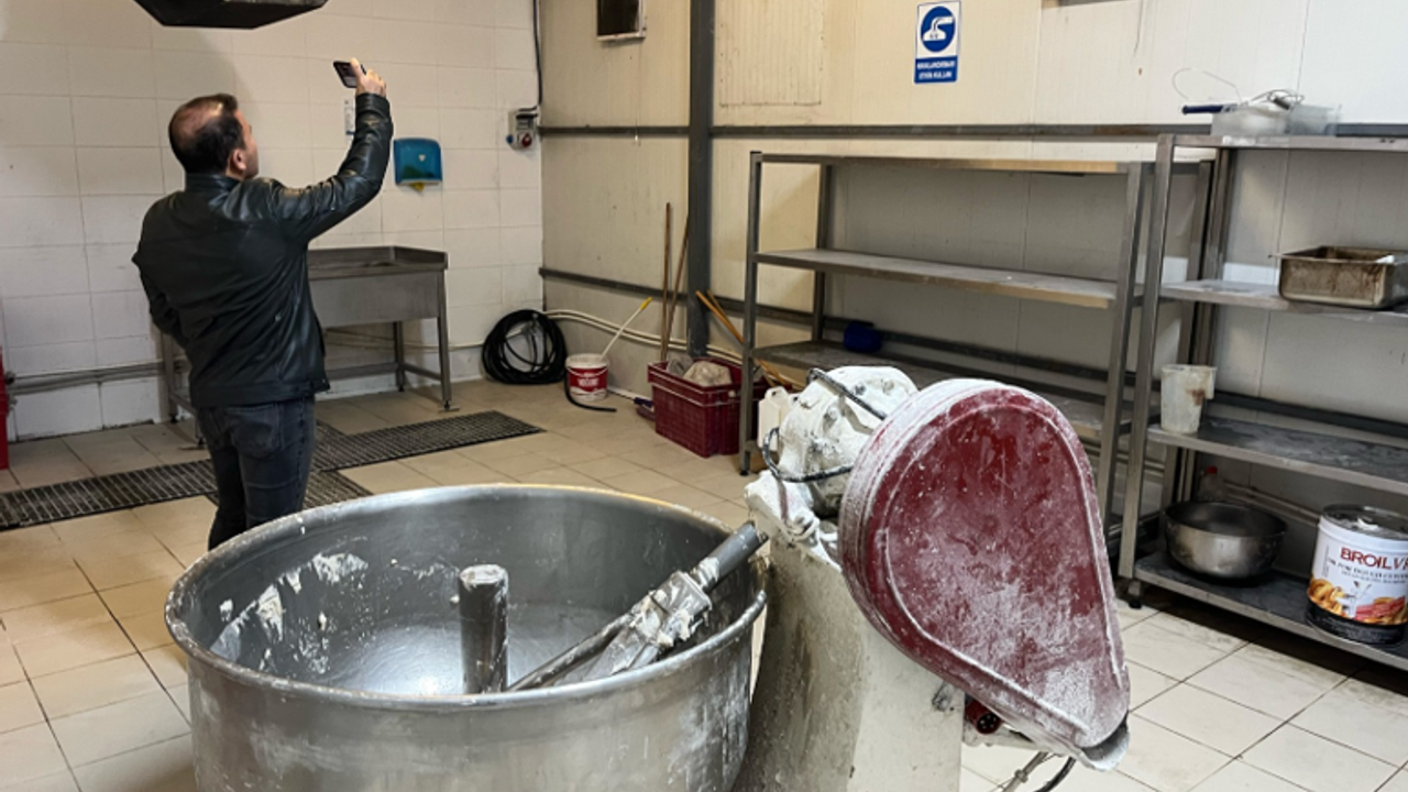 Fabrika içinde yapılan incelemeler sırasında zeminde ölü fare tespit edildi, kalorifer peteklerinin küflendiği görüldü. Görevliler hamur karma makinesinin bulunduğu alan ile diğer bölümlerde incelemeler ve hijyen denetimi yaptı.