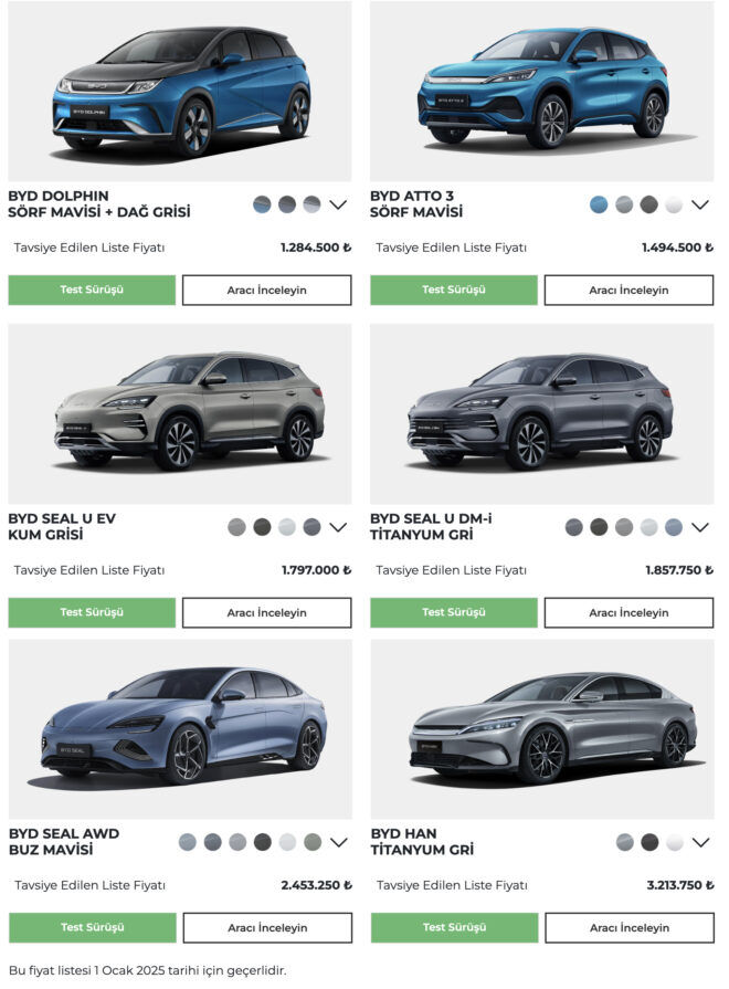 Yeni yılın gelişiyle birlikte BYD Dolphin modeline 4.500 TL, Atto 3 modeline 4.500 TL, Seal U EV modeline 7.000 TL, Seal U DM-i modeline 7.750 TL, Seal AWD modeline 13.250 TL ve Han modeline 13.750 TL zam yapıldı. Bu fiyat artışlarıyla birlikte, BYD'nin rekabetçi fiyatlama politikası sorgulanmaya başlandı.