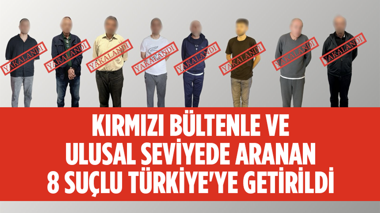 İçişleri Bakanı Ali Yerlikaya, sosyal medyadan yaptığı paylaşımda, "Kırmızı bültenle aradığımız 6 suçluyu, ulusal seviyede aradığımız 2 suçluyu, Gürcistan, Azerbaycan, Almanya, Avusturya, Kuzey Makedonya ve İrlanda’dan ülkemize getirdik." ifadelerini kullandı.